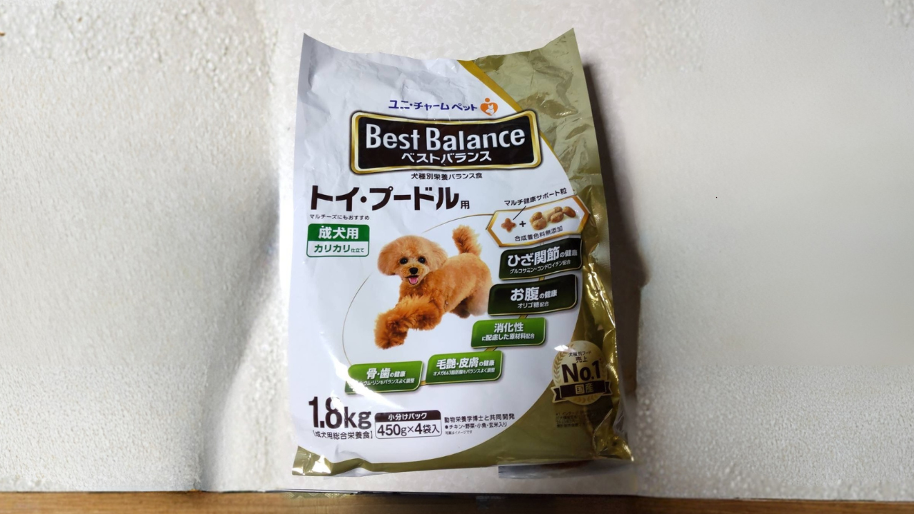 ユニ・チャーム ペット「ベストバランス トイプードル用 成犬用(カリカリタイプ)」。